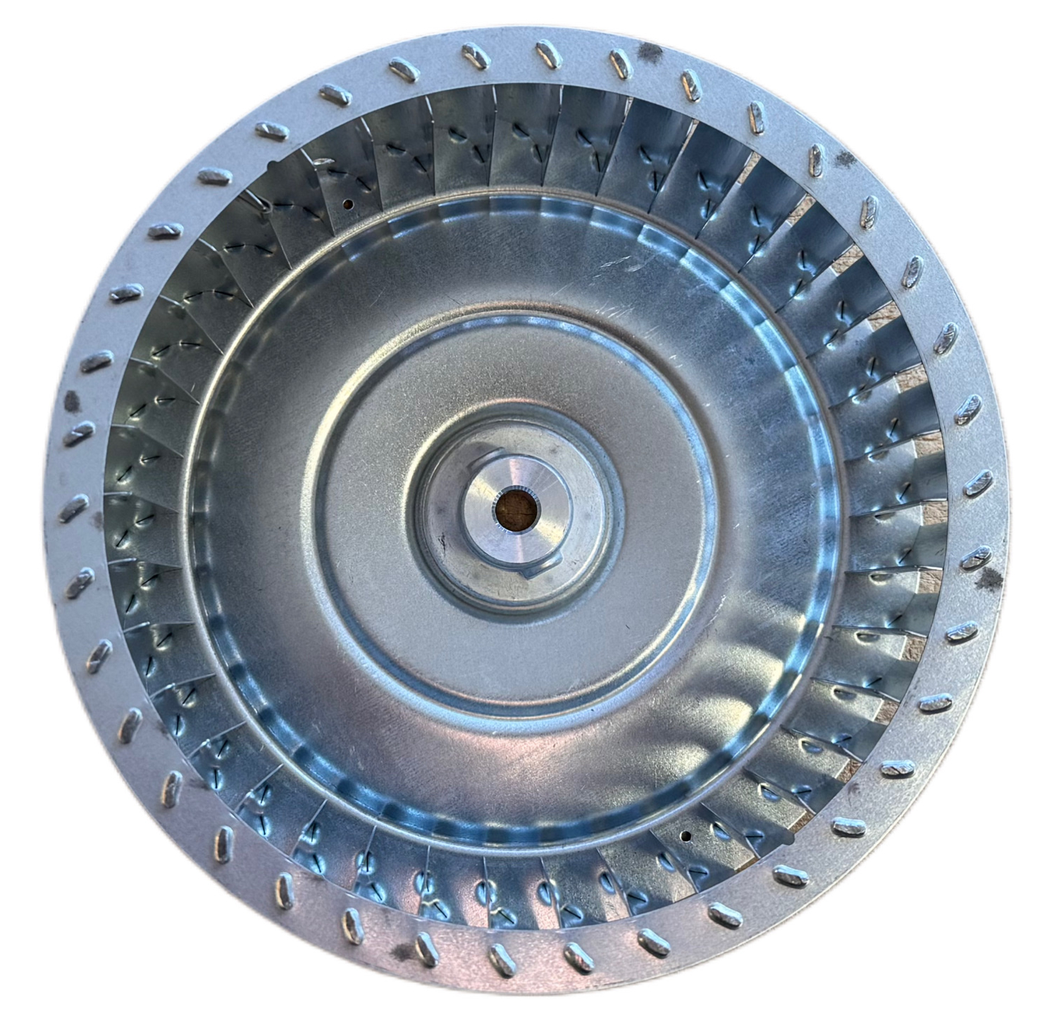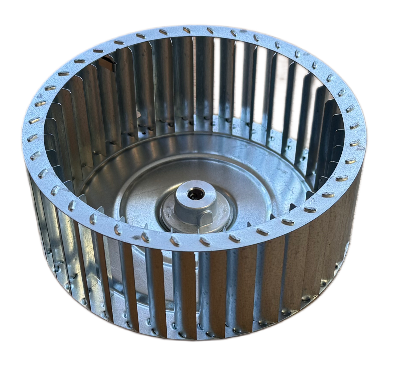 Дана крильчатка є відцентровою (радіальною) і виготовлена з високоякісної оцинкованої сталі. Вибір матеріалу не є випадковим: цинкове покриття надійно захищає метал від корозії, що критично важливо при роботі з повітряними потоками, які можуть містити продукти згоряння або конденсат. Сталь забезпечує необхідну жорсткість конструкції, запобігаючи деформації під впливом високих температур, що часто є проблемою для пластикових аналогів.