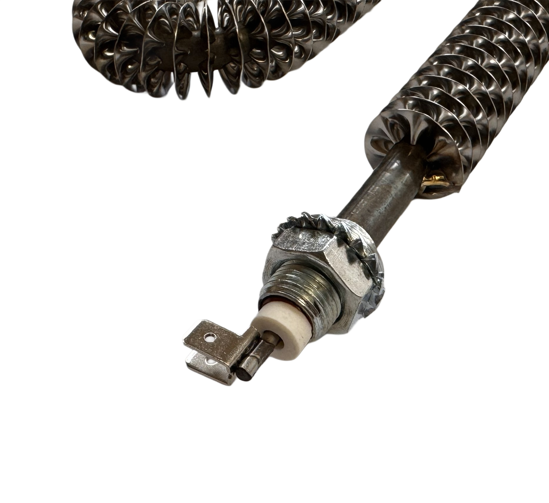 Головною конструктивною особливістю даного нагрівача є використання спірального оребрення. На відміну від звичайних гладких трубок, оребрені ТЕНи мають значно більшу площу контакту з повітрям. Це дозволяє реалізувати процес інтенсивного теплознімання: при тих же габаритах пристрій передає повітрю набагато більше теплової енергії. Оребрення виготовляється з матеріалів з високою теплопровідністю, що мінімізує інерційність системи — нагрівач виходить на робочий режим за лічені секунди.