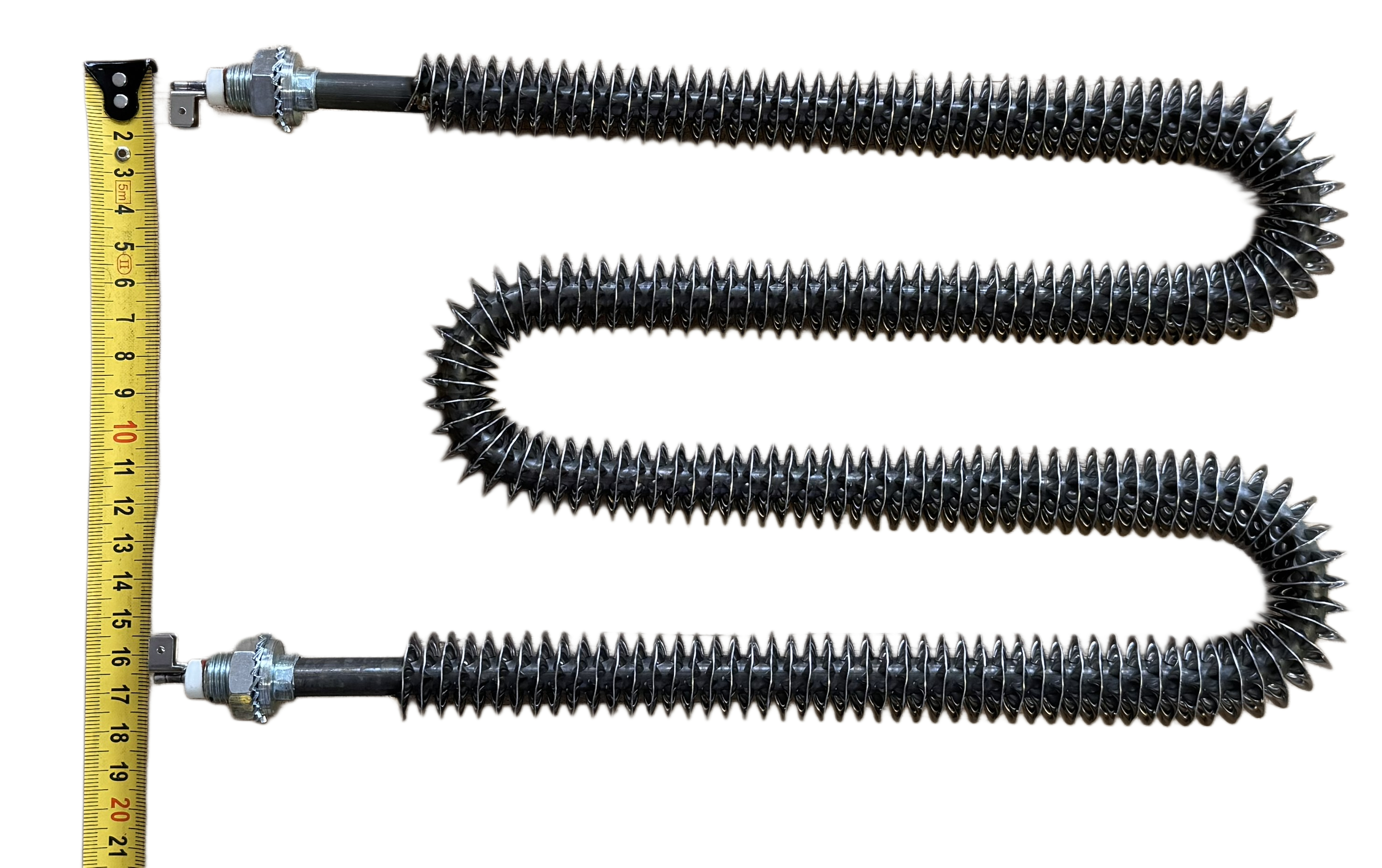 Головною конструктивною особливістю даного нагрівача є використання спірального оребрення. На відміну від звичайних гладких трубок, оребрені ТЕНи мають значно більшу площу контакту з повітрям. Це дозволяє реалізувати процес інтенсивного теплознімання: при тих же габаритах пристрій передає повітрю набагато більше теплової енергії. Оребрення виготовляється з матеріалів з високою теплопровідністю, що мінімізує інерційність системи — нагрівач виходить на робочий режим за лічені секунди.