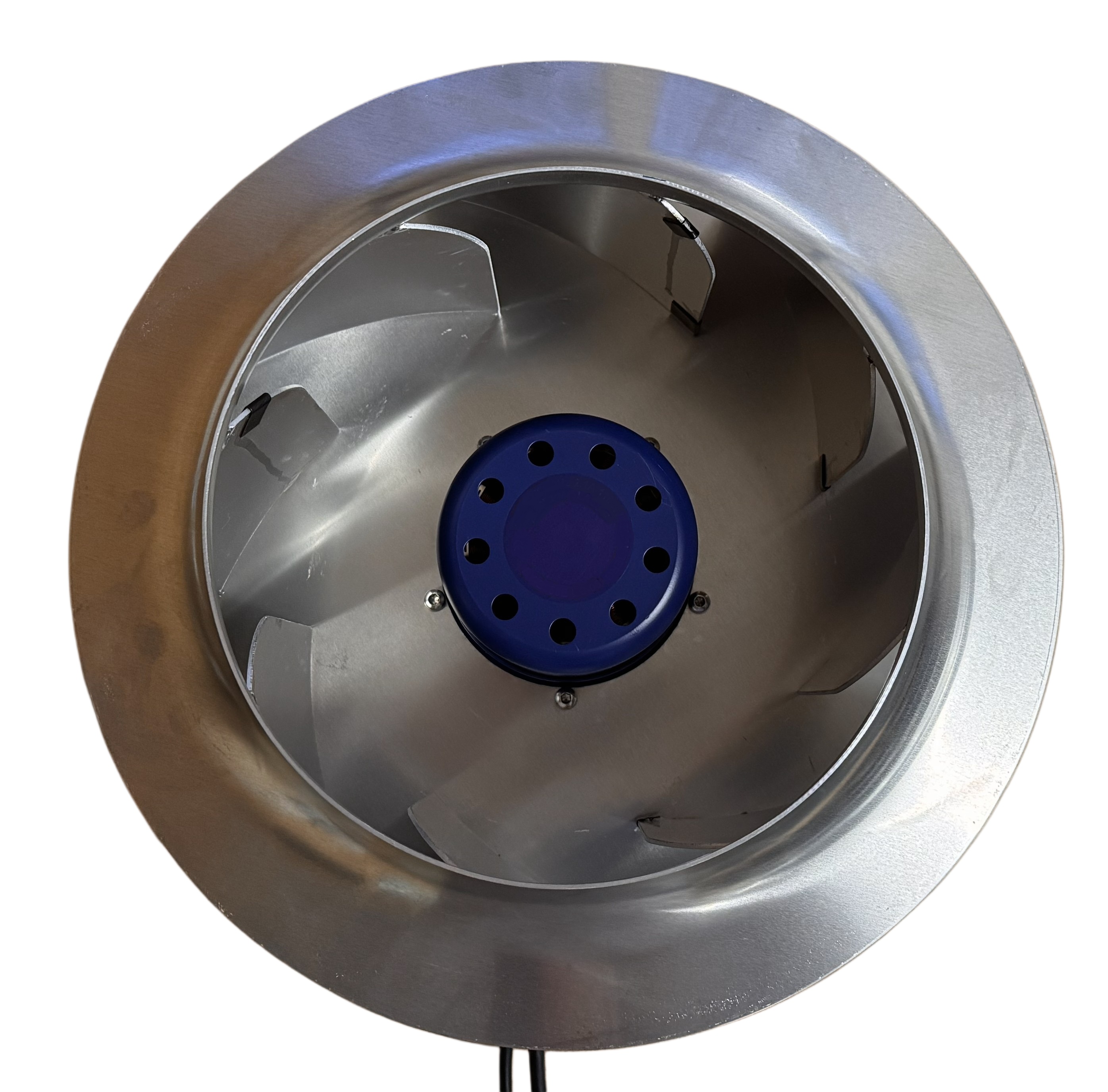 Конструкция крыльчатки: Назад загнутые лопасти Двигатель поставляется в сборе с центробежным рабочим колесом. Крыльчатка имеет назад загнутые лопасти, что является оптимальным выбором для установок серии ВУТ. Такая конфигурация обеспечивает несколько ключевых преимуществ: