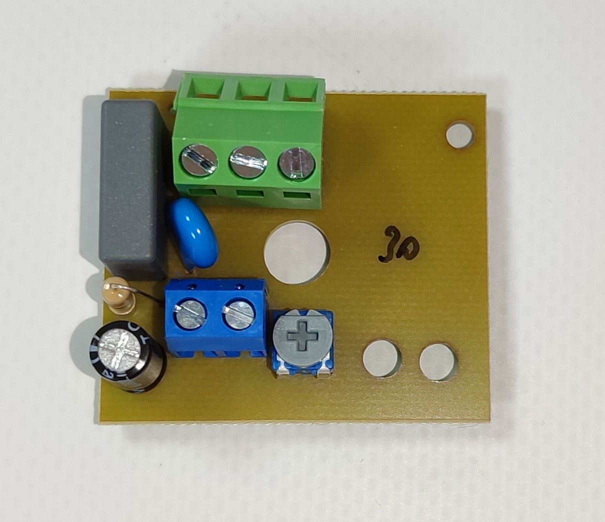 Задержку выключения можно легко настроить с помощью регулировочного винта (потенциометра), расположенного непосредственно на плате. Пользователь может самостоятельно установить нужный интервал — от 2 до 30 минут. Поворот винта по часовой стрелке увеличивает время работы, а против часовой стрелки — уменьшает.